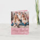Personlig, familjefoto "God jul". Rosy rosa-bakgrund med elegantens burgundskript. Hand plockade snöflingor. "Gott nytt år" i texten. Anpassa varje rad om du vill. Ljusopacitetskonstruktion inuti ger utrymme för ditt eget personliga skrivna meddelande. Byt platshållarfoto, med ett eget, för en mysigt varm familj säsong hälsning!