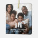 Den här festliga julprydnaden har en festlig vit övertäckning av gräs träd och klassisk God jul typografi med ditt namn, din bild och ditt år.