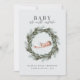 Baby dess kall utanför. Julfotokort för födelsemeddelande, Helgdag. Utformning av vinter-vattenutandningsfärg.