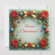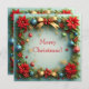 Festiv helgdag med rött poinsettias, dekorativa bubblor och gyllene band-accenter, mot en livfull bakgrund, perfekt för julårstidsdesign, inbjudningar och hälsningskort.