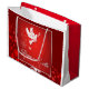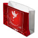 Julfredgåvan hänger lös i rött. Stort glansigt