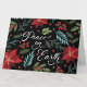 Denna julhälsning packar verkligen en punch. En djärv bakgrund är perfekt för de ljusa färgerna på julblommorna. Välj det färgschema som fungerar bäst för dig eller anpassa med dina egna färger. Lätt att anpassa meddelandet på insidan efter eget tycke.