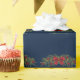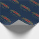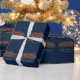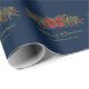 Desteis ursprungliga illustration av en festlig grönt fir träd-garland som är dekorerad med en stor röd båge, röda julbalkar och en del faux ljus. Bakgrunden till färg är mörk blått. Det finns också två anpassningsbara textområden.