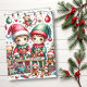 Julkort i personlig med en illustration av söta små älvar som skapar leksak i deras North Pole Workshop. Kute, grym julkonst.