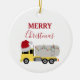 En söt illustration av ett tankfartyg i gult lastbil som bar en julhatt och som i julklapp dekorerade ljus med ord "God jul". Perfekt för transport lastbilar älskare i alla åldrar. En idealisk julprydnad för tanker lastbil entusiaster stora eller små, flickor eller pojkar.