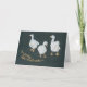 En snyggt julkort med tre gäss mot svart bakgrund och "God jul i guld och silver, från en handmålad utformning av Judy Adamson. Matchande kaffe koppar finns också.