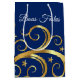 Denna stora storleka presentsäck visas i en fantasifull, djärv, guldfärgad färgad med God jul-text på framsidan. Visas i Sapphire Blue och guld-tone. Text överst på Boas Festas. Anpassa den här väskan eller köp som det visas.