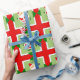 Fantastisk videospelares julklapp med julklapp som innehåller jultomten med en videostyrenhet. Redigera text som ska läggas till namn.