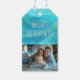Tropiskt temat julklapp märkre med fotomall. Tropiskt blått vinkart, med hälsning överst och foto längs grund. En rad hand plockade skiljer texten från bild. I stället för att namnteckning tar ge emot ett foto. Mer blått vågar täcker baksidan.
