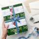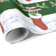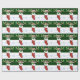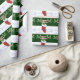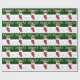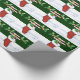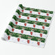 Julserien Roligt julomslutning papper med ett presentlager fyllt med gåvor, polkagrisar och andra glädjeämnen! Med löv och röda bär med snö som dekoration är bakgrunden till träd och snö. Perfekt för att slå in julklappar till någon i familjen!