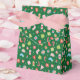 En stiliserad juldesign med gåvor, lager, godis-käppar, snöflingor, prydnadsföremål och klockor i traditionell julklapp i färg. Färg omfattar, grönt, rött, rosa och blått.