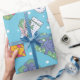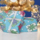 Olika julklappar i hand plockade på blå bakgrund. Sömlös juldesign.
