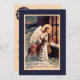 Denna inbjudan till jul i helgen visar en ängel från himlen med en liten hjort med julklappar tittar i fönstret vid jul-Kväll för att skapa fred och god vilja.