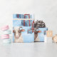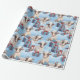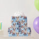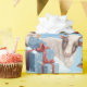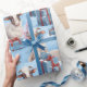 Den här presentfiguren med egna gåvor - ett blått tema, hon står bland inslagna presenter med snöflingor