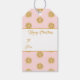 Helgdag-presentens märkre visas med en julklapp i guld snöflingor. Färg Rosa och Guld Anpassa det här objektet eller köp som det är. Leta efter vår matchande presentförpackning, vävnadspapper, märkre och presentväskor. Lagrar-bild