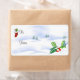 En traditionell juldekal för julklapp som visar en snö-scen och en sprit av märkre som fylls med röda bär som fylls med lite snö. En julklapp lägger till den avslutande beröringen.