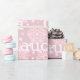 Jul, rosa, vit, namn, mönster inslagna pappert. En fin julomslutning papper, skräddarsydd med ditt barns namn.