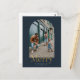 Modernt gyllene "Merry"-inramat julkort med foton. Guld falsk folie "Merry", modernt välvd fotofram och festlig mörkblå bakgrund.