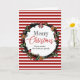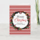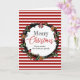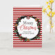 En söt illustration av en festlig blomsterkrans på en röd-vit-randig bakgrund.