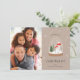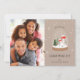 Festiv linjekonst av snöglob med fallande snö, träd och svampar. Festlig typsnitt "Julglädje" och ditt favoritfoto.