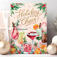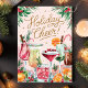 Fira högtidsstämningen med det här livfulla och festliga julkortet "Holiday Cheer"! Med en fantastisk akvarellillustration av läckra högtidscocktails, garnerade med färska tranbär, apelsiner och sockerdrickor, utstrålar kortet värme och glädje. Perfekt för att sprida festliga hälsningar till vänner, familj eller kollegor som älskar en god högtidstoast. Med elegant typsnitt och färgstarka inslag är detta kort det perfekta sättet att skicka julglädje.