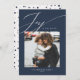 Dela ”glädjen” under högtiderna med dina vänner och familj! Dessa moderna, enkla och stilrena 7x5 tum julens fotokort har modern typografi i vitt på marinblått, med en plats för ditt favoritfoto.