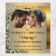 Festlig julvinskylt med eget foto på elegant guldbakgrund med upplyst julgran och gnistrande stjärnor. Vacker för ett nygift par och kan anpassas för andra tillfällen.