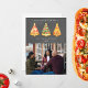 Illustration av julgran i form av pizzasnitt med stjärnor. Bakgrunden är inspirerad av en kridstableau. Personifiera namnet, året och fotot.