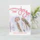 Den röda Holiday Joy Photo Card har en modern handritad design på vit bakgrund. Det finns en liten stjärna ovanför ordet "Glädje" som ger en magisk look. Baksidan av kortet är röd med vita handritade stjärnor. Malldesignen låter dig enkelt ladda upp ditt bästa foto/bilder till framsidan och/eller baksidan av kortet. Du kan också lägga till din egen hälsning tillsammans med året. Tryck på knappen "Anpassa" för fler redigeringsalternativ. Besök butiken "Thank You Always" för att se kollektionen "Holiday Joy"!