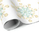 Julpapper med blankt guld och turkost julglas snöflingor inpackningspapper.