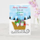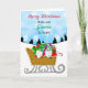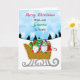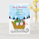 Söta handritade julgnomar i en vintersläde full av presenter, God Jul Kort.