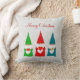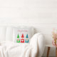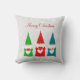 Moderna söta julgnomar klädda i rött, blått och grönt på ljust silvergrå Kudde. Text endast på framsidan! God Jul!
