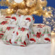 Kute, vit killunge, get med en julhatt med motsvarande röd sjalk med en halv krans av holly och julgrej - på söt guld med bokeh bakgrund - Bästa för större paket, designen är 6 tum för varje get - originaldesign av goatdam ©Whimsical Artwork™