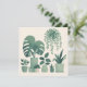 Anpassningsbar minimalistisk illustration av punkterade inomhusplantor på ljusblå bakgrund. Fjäderfä, inklusive en monstera, kascadväxter och en grönt i skyddade krukor. Mjuka gröntar, enkelt linjer och ren, lugnande utformning för ett modernt botaniskt utseende.