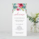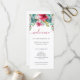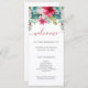 Dessa vackra jul- och vinterbröllopsprogram har trendig vattenfärgade buketter av rött och rosa blommor, med klumpiga och massor av grönt och löv på vit bakgrund. Ett handskript tillför ytterligare en modern beröring.