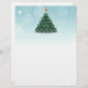 Abstrakt illustration: Gröna ornament och en gyllene stjärna bildar en julgran på en ljusblå bokeh-bakgrund.