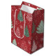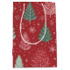 Den här presentsäcken har en minimalistisk skogsinspirerad design med en upprepad mönster av odekorerat Julgranar som illustreras i olika skuggor av grönt, mjukt vitt och muterat teal. Träd, var och en unik i form och struktur, är utspridd över en röd rik och skapar en festlig men underskattad estetik. Om säcken är gjord av en robust och högkvalitativ papper med en avslutat projektionsyta är den både hållbar och snyggt. Twisted pappra handtag tillför en naturlig beröring, medan en samordnande märkre i form av ett träd fullbordar utseendet. Perfekten för julhelgen erbjuder väskan ett modernt, naturinspirerat alternativ till traditionell juldesign - perfekt för alla som uppskattar rent linjer, ren elegans och en nod till skandinaviskt stil.