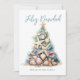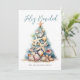 Julgran Beach Feliz Navidad Helgdag Card. Feliz Navidad! varma och bögiga önskemål denna säsong med ett unikt helgdag som innehåller ett charmerande Julgran som är gjort av sjöhäckar och svält. Träd går i centrum med en stjärnfisk och en blandning av sinnesblått och grönt som framkallar havets skönhet. Om du återgår till sandbas har designen en rustik vattenfärg stil som tillför en avslappnad elegans. Din familj namn visas vackert vid grund och skapar en personlig. Perfekt för alla som bor på tropiska språk som Florida, Hawaii eller Bahamas, eller för dem som helt enkelt kärlekar kustvibes. Det är ett roligt sätt att ta med en stänk surfa och sand till dina semesterhälsningar.