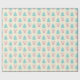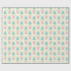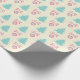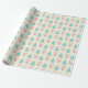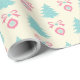 Förpackning papper med ett sött jultoma mönster med gräddbaksida och illustrationer av en färgad av grönblått julgran och en skastad rosa med ett band i ett upprepande mönster.