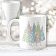 Elegant Modern Mugg med Julgranar och text NOEL i Silver och Pastel Färg, uppgifter om Faux Glitter. Anpassa enkelt texten i mitten eller lämna den tom. - Kate Eden Art
