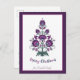 Julkort med Julgran med folkblommor och löv, inspirerat av folklore frÄn Lowicz med anpassade och adress fÀlt. Vit och lila bakgrund God jul!