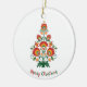 Julprydnad med Julgran med folkblommor och löv, inspirerade av folklore frÄn Lowicz med anpassade text fÀlt. God Jul!