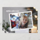 Personliga julkort. Vacker julgran med fina silverprydnader och vit ljusstake foto högtidskort.