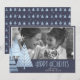 Det här fantasifulla julkortet har ett vackert arrangemang av stiliserade julgranar och snöflingor i nyanser av himmelblå och skiffer på en marinblå bakgrund. Valfri "God Jul"-text och en mall har tillhandahållits för att lägga till ditt foto, namn och/eller annan text. Baksidan har ett matchande julgransmönster. Sök på ID861 till ID864 för att se ytterligare färgalternativ och andra produkter i denna moderna juldesign.