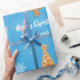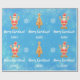 Modern julklapp i för barn, med en minimalistisk utformning som omfattar ett gingerbröd figur i Santa, ett gingerbröd i Julafton träd, snöflingor, hälsning, "God jul" i snyggt i typografi och personlig namn. På blå bakgrund med snöflingor.