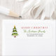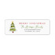 Julgran med returetiketter med skuggande stjärnor med personlig, vattenfärgsgrafik.