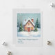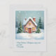 Bilden visar ett vackert dekorerat julhus, dekorerat med smart ljus.Kortets överkant säger glatt "God jul!" i ett kalligrafiskt stil, med en speciell charm och glatt stämning. Idealisk bild för julkort eller helgdag dekoration.