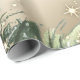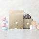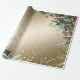 En elegant julfest med julgran grenar med kottar på guldbakgrund.