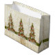 Snyggt helgdag presentsäck med åldras guld rand och guld polka dots om krämbakgrund. Den ena sidan har ett vackert Julgran som är utmärkat av poinsettias och ett guld glitter. Den andra sidan har en finare-märkre som du kan anpassa med namn i presentgivaren och året.