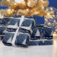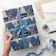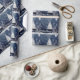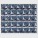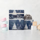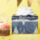 Julgran i blått med snö på julpapper